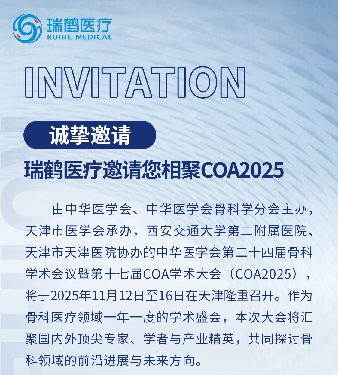 誠摯邀請 | 瑞鶴醫療邀請您相聚COA2025